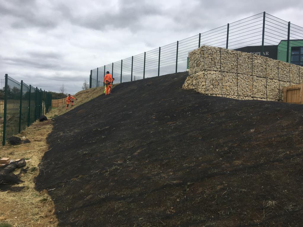 As part of a contruction project building a new sports area at a school in Grantham. This embankment was part of the major earthworks supporting the project which was buit in tiers.