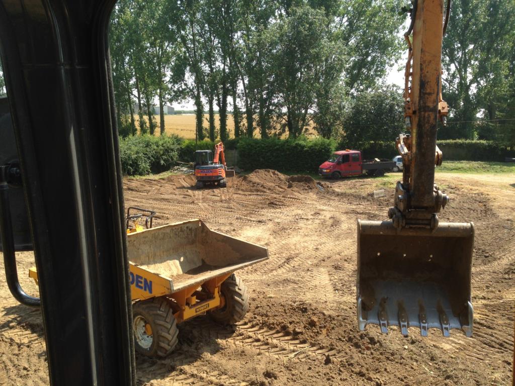 Once the necessary vegetation clearance and remedial tree works were complete the team set to re-profile the entire site to grade out the uneven terrain. Surplus topsoil already present on site was transferred to the paddock area and profiled evenly throughout the site to give an even, flat terrain in which the horses could graze.