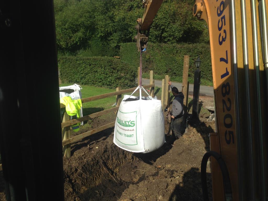 Once ready to plant the team removed the damaged part of the hedge and began excavating a trench to receive the new stock. Creating a healthy root zone for the new hedge plants would be essential to their establishment. The team excavated a 1m x 1m trench running the length of the hedgerow. This would accommodate the large 210 litre pots and the 50;50 mixture of existing spoil and fresh compost to be back filled around them. When planting new hedge stock it is important not to "spoil" the new stock with just compost. The mixture of new compost and existing soil will encourage the roots to break out of the planting trench and establish into the surrounding soil.