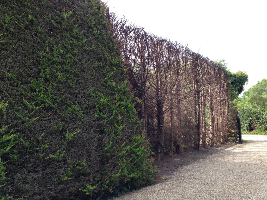 Greenscape were tasked with restoring an established conifer hedgerow which had fallen victim to fire damage. The foliage, branch structure and main stems had all been severely burnt leaving complete replacement of the damaged trees the only option. The hedgerow formed part of a valuable screen from the road for an adjacent residential property. This factor emphasized the need for the replacement of the hedgerow to provide an "instant" screen.