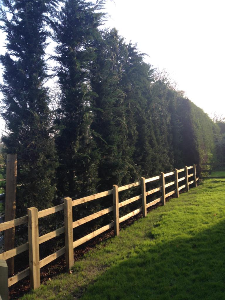 The Landscape team at Greenscape identified the species of the hedge as "Castle Wellan", a genus of Leylandii. The established hedgerow had been maintained at a height of 4.5m which called for a visit to our supplier who specialised in the growing of specimen plants. Greenscape were able to locate 4.5/5m plants which had been pot grow in 210 lite pots. Planted a 1 per meter the team would be able to successfully reinstate the screen which the hedge provided immediately.