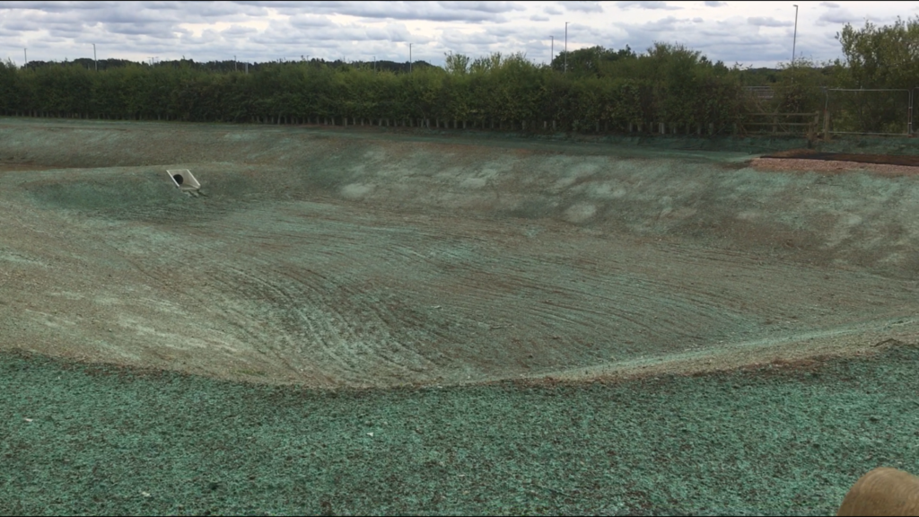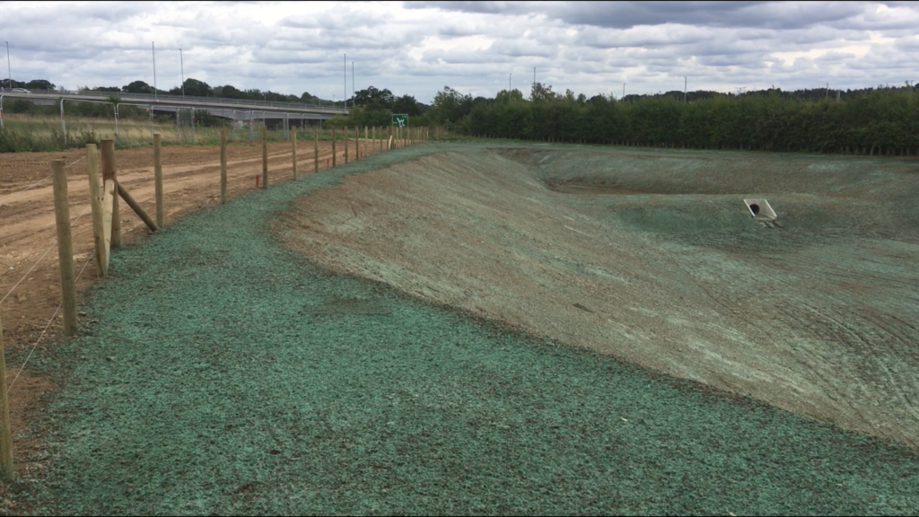 Greenscape completes hydroseeding of Wildflower and Amenity Seed to an attenuation lagoon at Broadland Gate. Norwich.