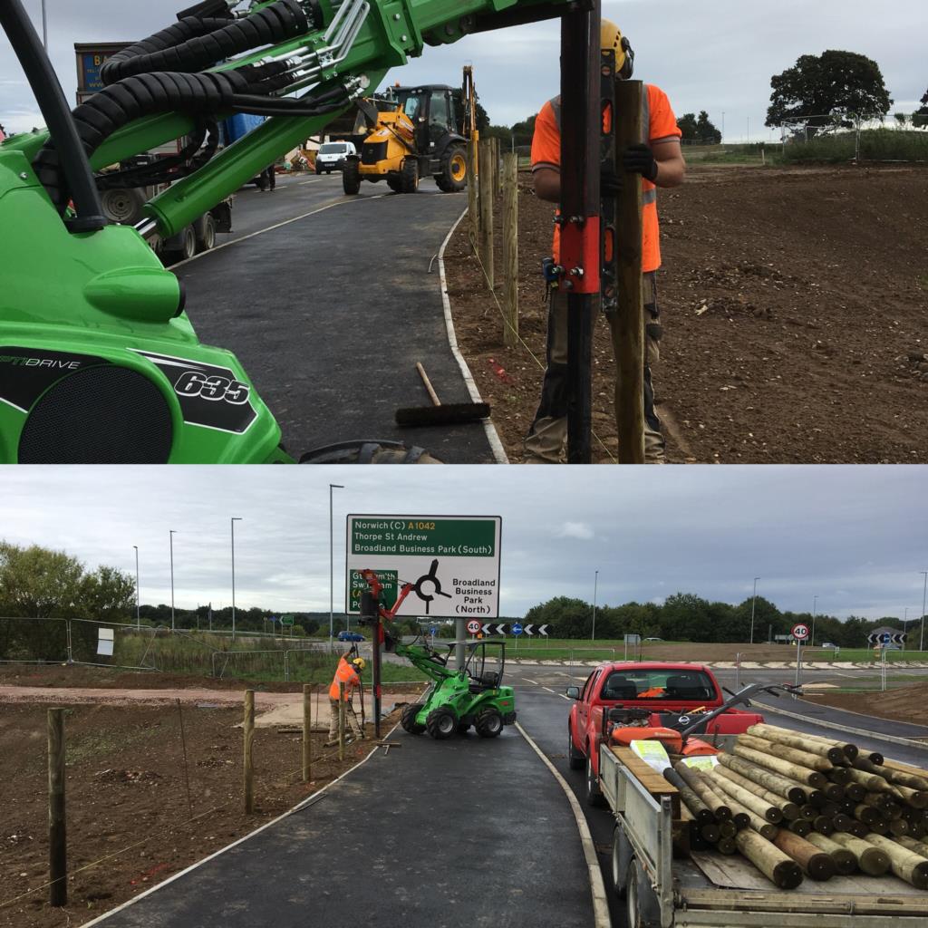 A regular civil engineering client tasked us with the seeding of an attenuation lagoon for their recently completed infrastructure project at Broadland Gate Norwich.