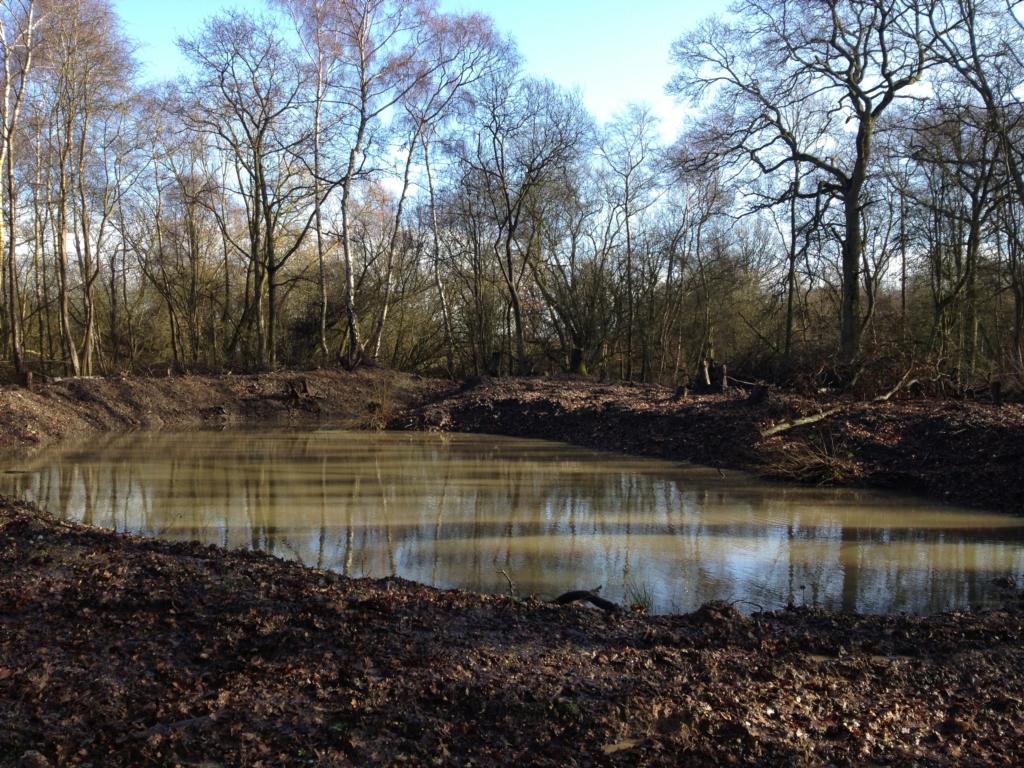 Great crested newt receptor pond immediately after pond reprofiling...